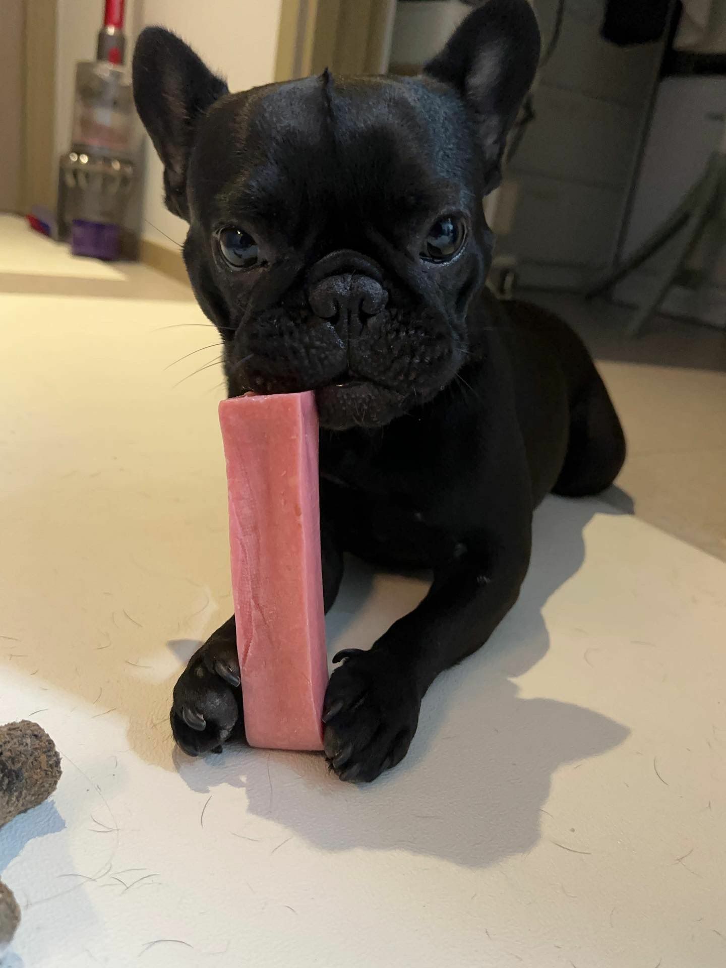 當芝士骨在經過口水浸濡後邊緣稍微軟化,狗狗便能慢慢嚼食,小型狗狗又犬老犬也適用,所有乳糖幾乎去除,只有0.9%脂肪,不用擔心吃多會變胖。