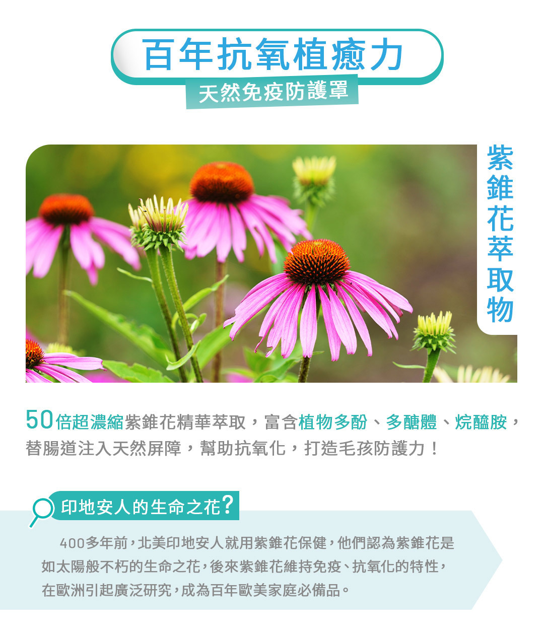 ✔50倍超濃縮紫錐花萃取,高活抗氧幫助免疫防護