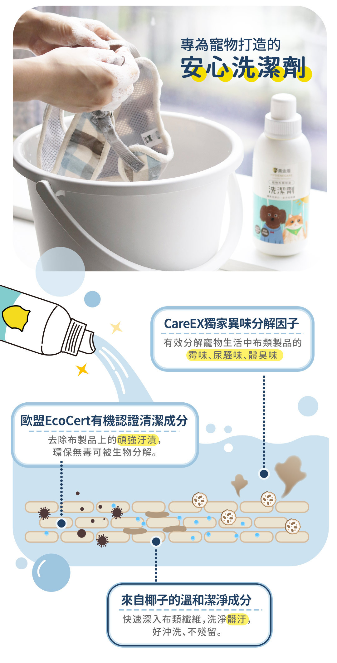 ►注意事項:1. 使用前請先確認洗滌標示,易褪色材質分開洗滌。 2. 若不慎誤食或接觸眼睛,請立即以大量清水清洗並盡速就醫。
